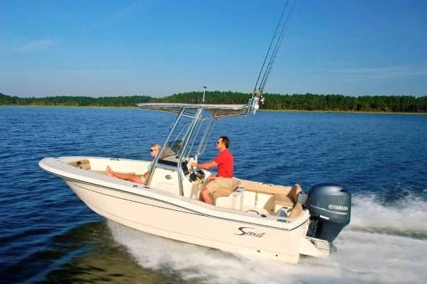 Another fine choice for striper fishing would be the 195 Sportfish. This boat gives you nimble access to remote fishing destinations while delivering the luxury you expect from Scout. With a center console and a spacious casting area, this could be your perfect craft for landing the new striper world record.